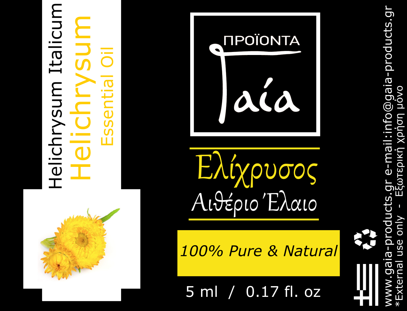 Πιστοποιημένο αιθέριο έλαιο Ιταλικός Ελίχρυσος που προέρχεται από το φυτό με την βοτανική ονομασία Helichrysum Italicum με ατμό - απόσταξη από τα άνθη του. Γνωστό επίσης ως αθάνατος ή Αμάραντος (immortelle ή Everlasting) καθώς οι ανθισμένες κορυφές του διατηρούν το κίτρινο χρώμα τους και δεν μαραίνεται ποτέ. Η ονομάσία του προέρχεται από τις λέξεις Ήλιος και Χρυσός και χρησιμοποιείται από την αρχαιότητα για τη μεγάλη θεραπευτική του δράση στις πληγές μετά τις μάχες. Μπορεί να βρεθεί σε περιοχές με ξηρό, υψηλό υψόμετρο με μεγάλη έκθεση στον ήλιο.