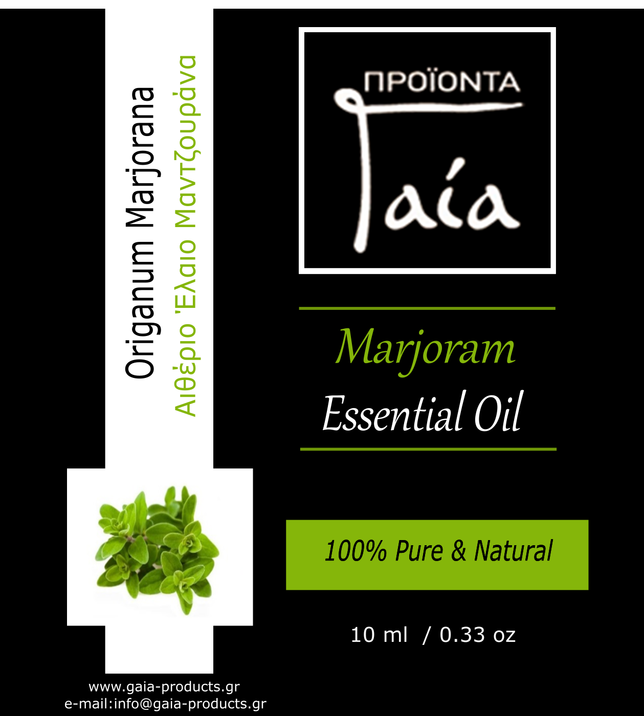 Το αιθέριο έλαιο της Μαντζουράνας (Sweet Marjoram),  λαμβάνεται από την απόσταξη των φύλλων και των ανθέων του φυτού και έχει ζεστό και ευχάριστο άρωμα.