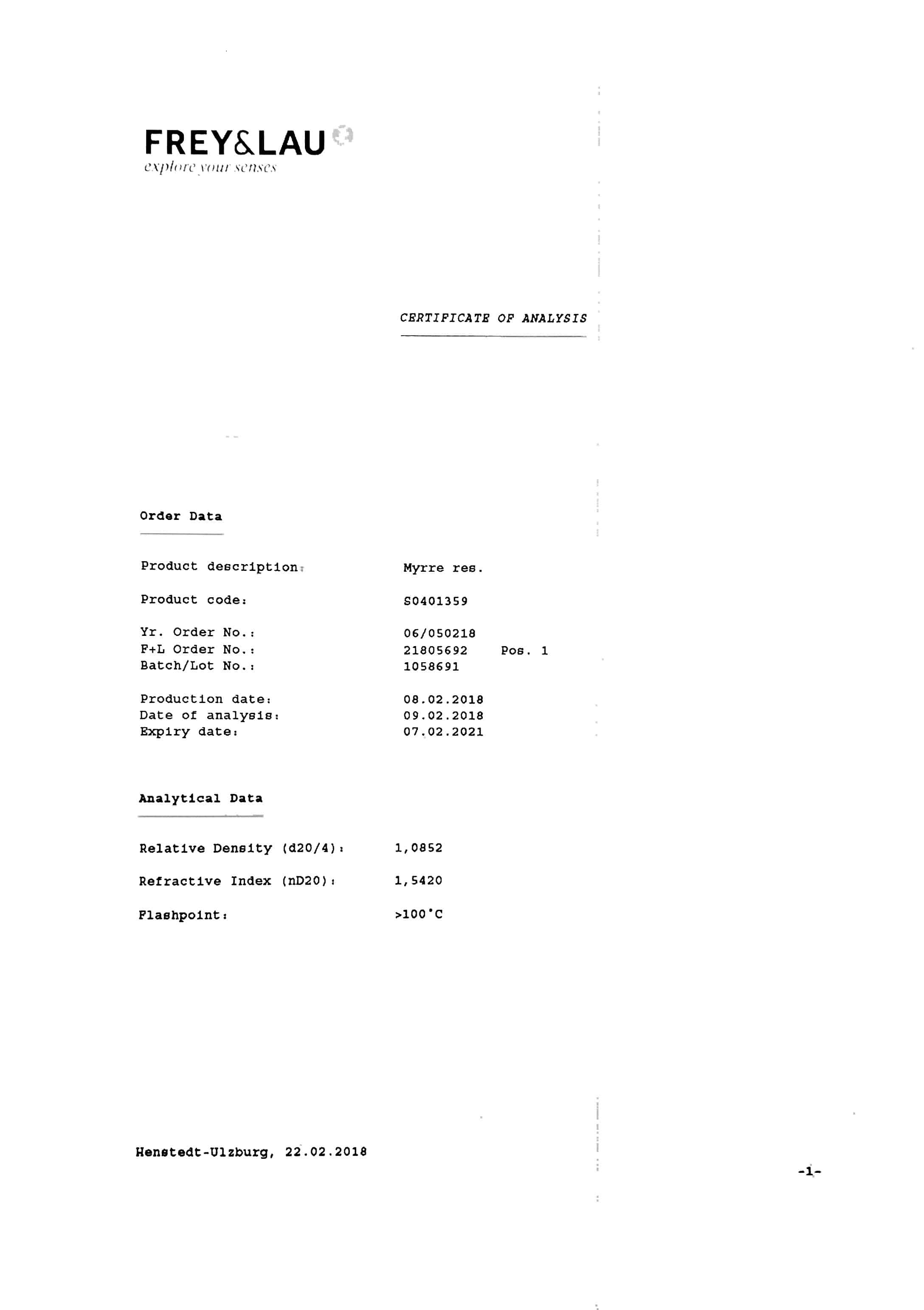 I.N.C.I. Name: Commiphora Molmol syn. C. myrrha