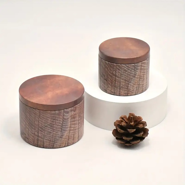 Μεταλλικό δοχείο κεριού με όψη φλοιού ξύλου και μεταλλικό καπάκι με σχέδιο ξύλου, 8oz χωρίς ραφή ιδανικό για τη δημιουργία χειροποίητων αρωματικών κεριών αλλά και για αποθήκευση. Kομψό, ανθεκτικό και πρακτικό για δημιουργίες DIY και δώρα. Ιδανικό μέγεθος για μοντέρνα διακόσμηση και αρωματοθεραπεία!