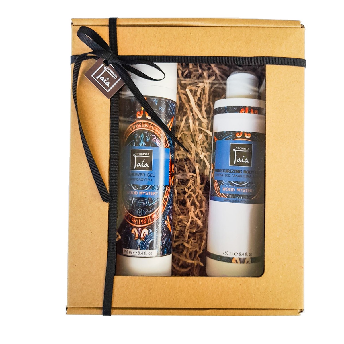 Περιλαμβάνει Αφρόλουτρο 250ml Wood Mystery και Γαλάκτωμα 250ml Σώματος Wood Mystery.